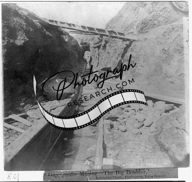 Hydraulic mining,big boulder,Kentucky Claim,Timbuctoo,Yuba County,CA,1866