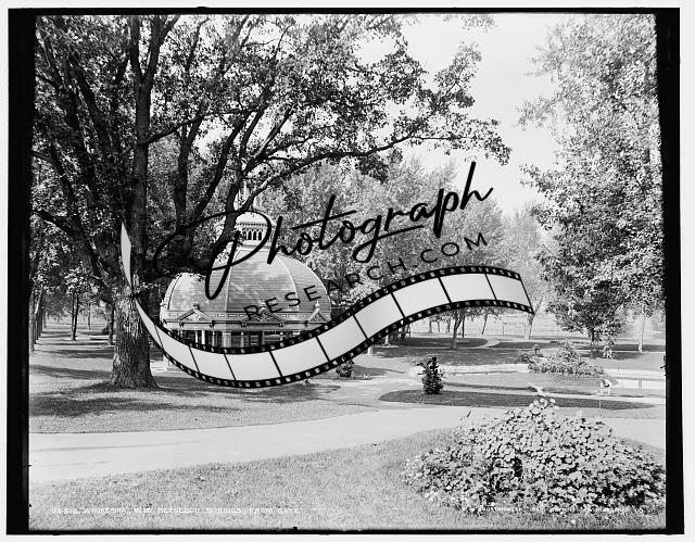 Bethesda Springs,gate,landscape pavilions,paths,Waukesha,Wisconsin,WI,c1898