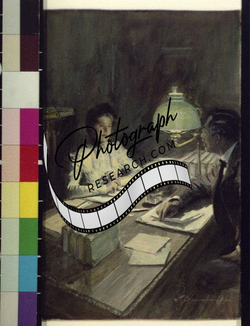 He looked across at her brightly,William Thomas Smedley,1902,Couple,Desk