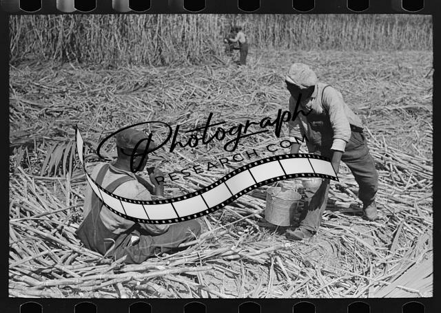Sugarcane worker drinking water in the field near New Iberia,Louisiana,LA,FSA,1