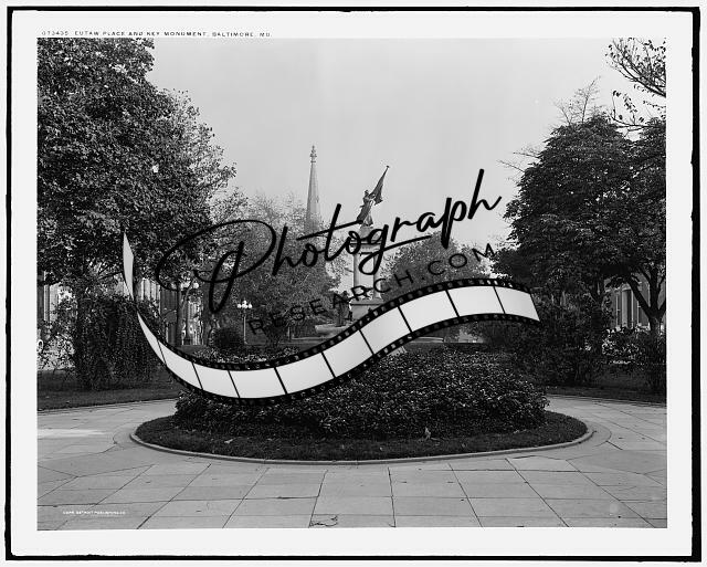 Eutaw Place,Francis Scott Key Monument,plazas,statue,Baltimore,Maryland,MD,c1910