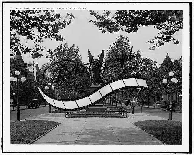 Mount Royal Avenue,statues,Confederate Monument,Baltimore,Maryland,MD,c1910