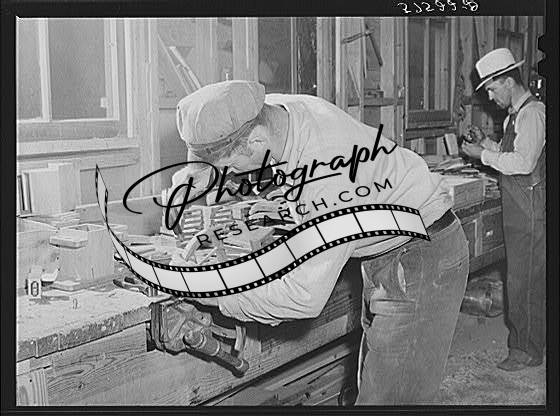 Title: Woodworking in the arts and crafts shop on FSA (Farm Security Administration) project. Ida Valley Farms, Shenandoah Homesteads, Luray, Virginia