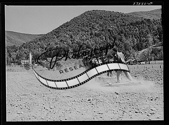Title: Working in the field on FSA (Farm Security Administration) project. Ida Valley Farms, Shenandoah Homesteads, near Luray, Virginia
