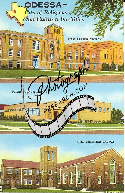 Odessa,City,religious,cultural facility,First Baptist Church,Ector Library,c1944