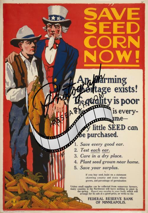 Save Seed Corn Now!,Uncle Sam,Farmer,An Alarming Shortage,World War,WWI,1917