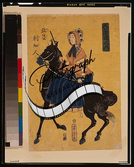 Igirisu,Englishman on horseback,Japanese photo,1861,Yoshitora Utagawa,text