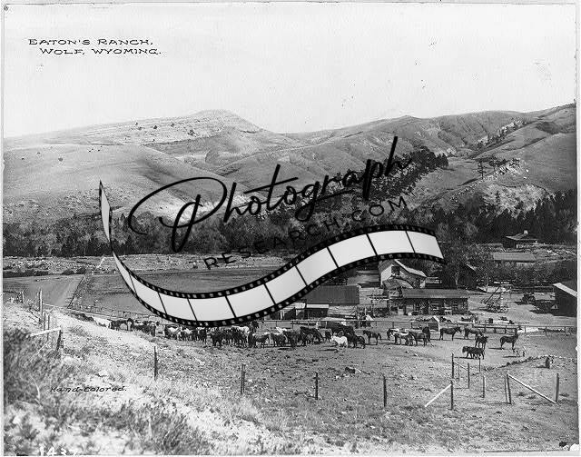 Eaton's ranch,Wolf,Sheridan County,Wyoming,WY,horses,corral,mountains,buildings