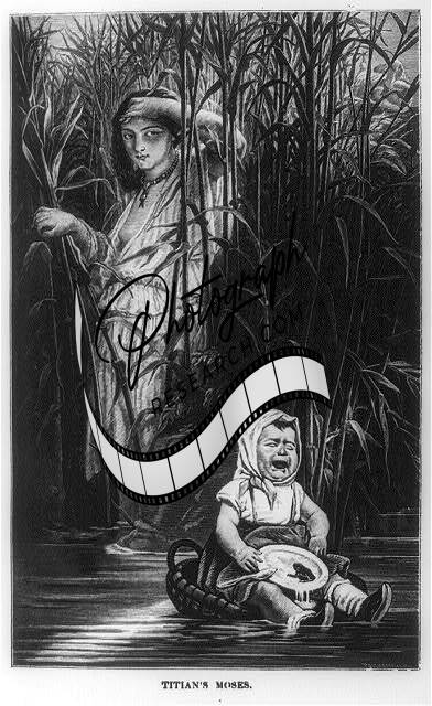 Moses being found in bullrushes,Titian's Moses,Pannemaker,woman,baby crying