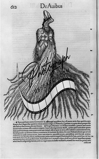 De Auibus,bird with long plumage,Konrad Gesner,Historiae Animalium