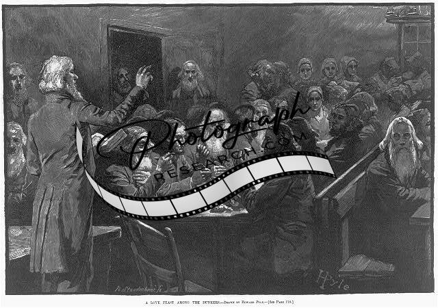 A love feast among the Dunkers,1883,Howard Pyle,R. Staudenbaur,Harper's Weekly