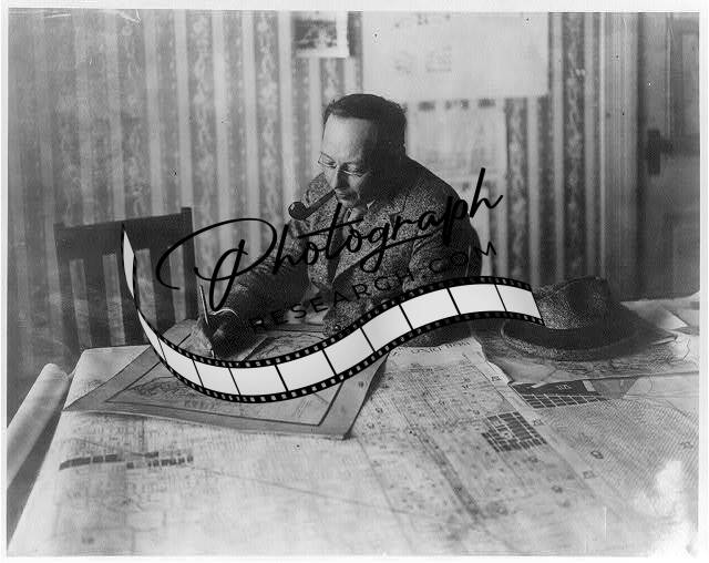 Frederick Law Olmsted,1870-1957,at drafting table,American landscape Architect