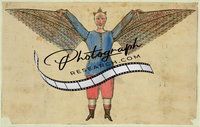 Humorous portrayal of a man who flies with wings attached to his tunic,1800-1830