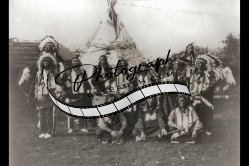 Sioux Indians,13 Indians posed,2 Horses,in front of tepee,c1908