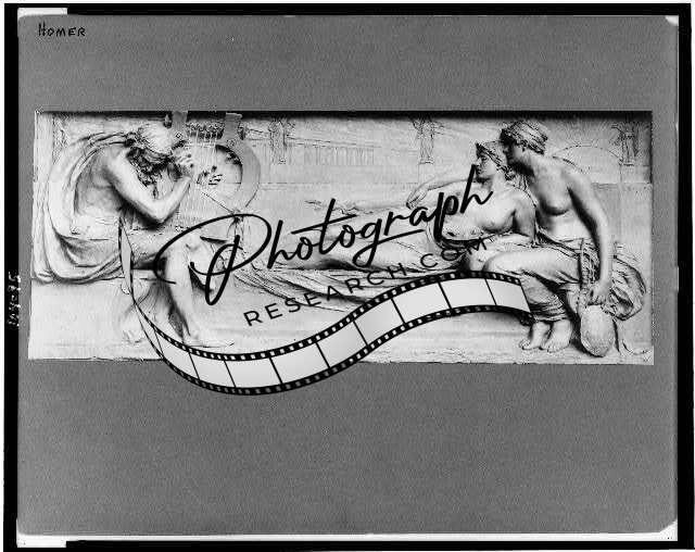 19th century English relief sculpture,Homer playing lyre,women listening,1870