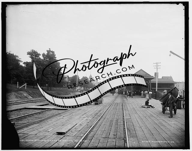 Grand Rapids,Indiana Railroad station,buildings,tracks,Petoskey,Michigan,MI,1890