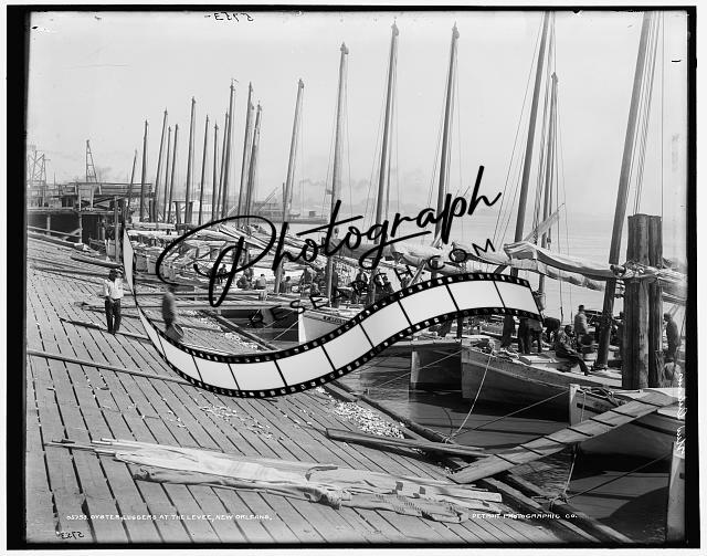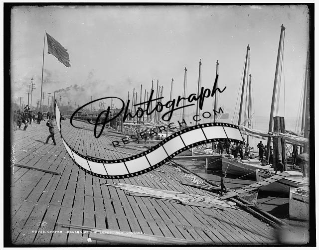 Oyster luggers,levee,docks,piers,boats,shellfish,New Orleans,Louisiana,LA,c1901