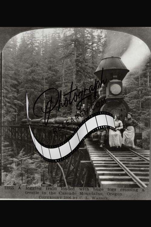 Logging Train loaded w/ logs,crossing trestle in Cascade Mountains,Oregon,OR
