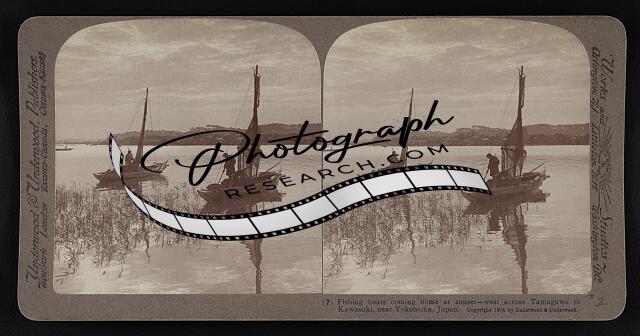 Fishing boats coming home at sunset--west across Tamagawa to Kawasaki, near Yoko