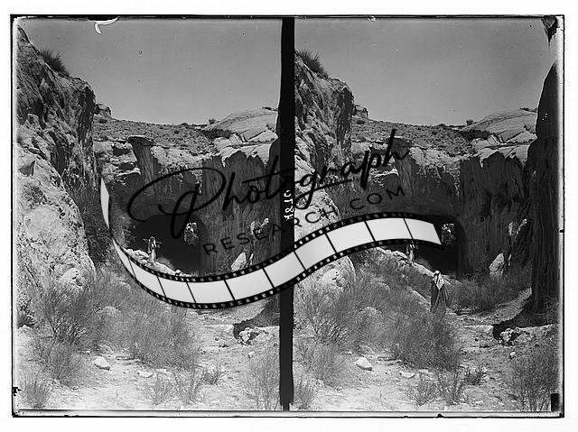 Title: Petra (Wadi Musa). In es-Siq. Showing overhanging cliffs rising to great heights