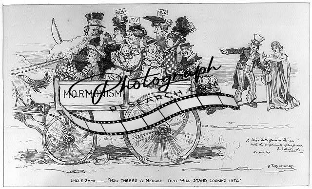 Uncle Sam,Mormons,Justice,Polygamy,Carriage,American Cartoon,August 1907