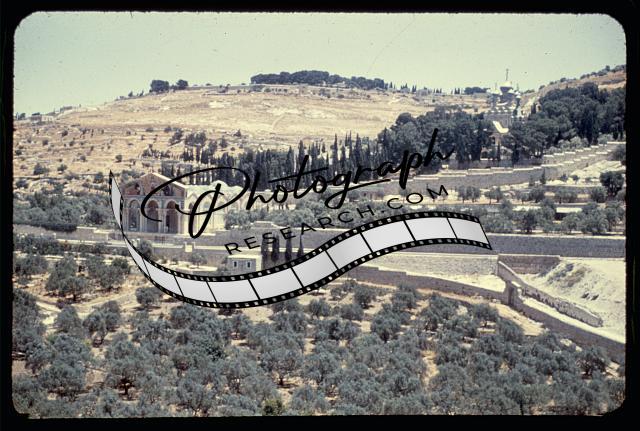 On slide mount: Garden of Gethsemane. City wall & the Golden Gate.