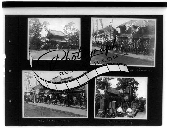 Building,Shrine,Buddhist funeral procession,mourners,cemetery,Japan,1915-1925