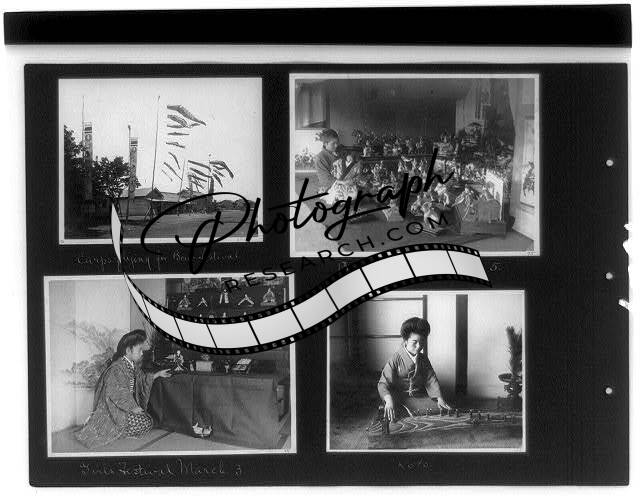 Carps flying for Boys Festival,'koto',Girls Festival March,Japan,1915-1925
