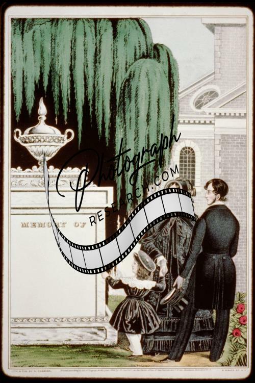 In memory of,Tombstone,people mourning,c1845,Currier & Ives Photo,Child