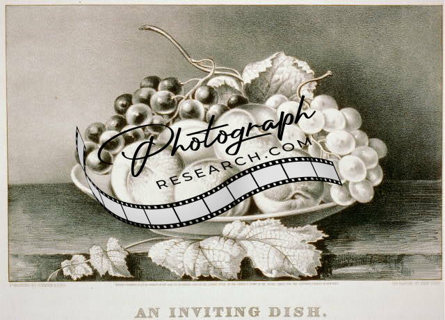 An inviting dish,Currier & Ives Photograph,c1870,Fruit,grapes,peaches