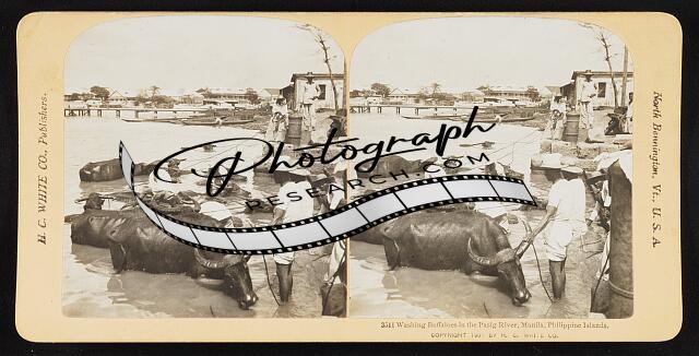 Washing buffaloes in the Pasig River, Manila, Philippine Islands