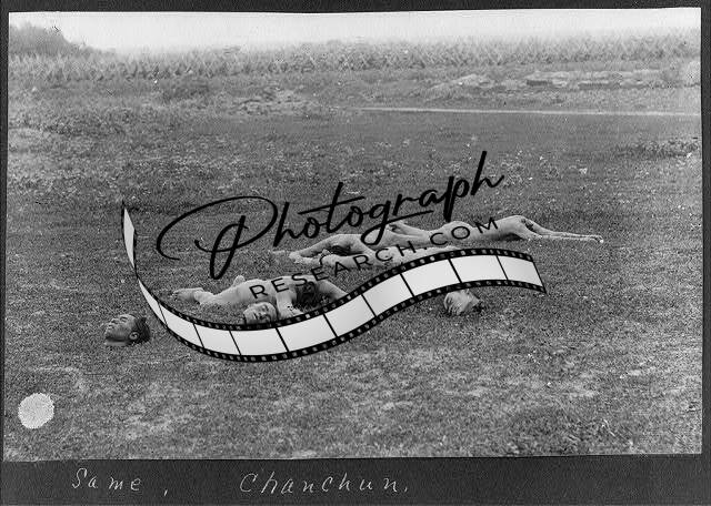 Decapitated bandits after execution,Chanchun,Manchuria & Korea,1911,in a field