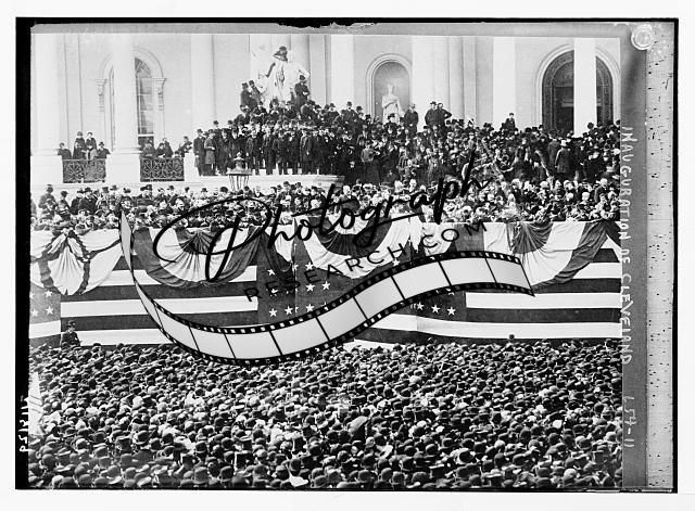 Inauguration of Stephen Grover Cleveland,1837-1908,US flags,podium,crowd