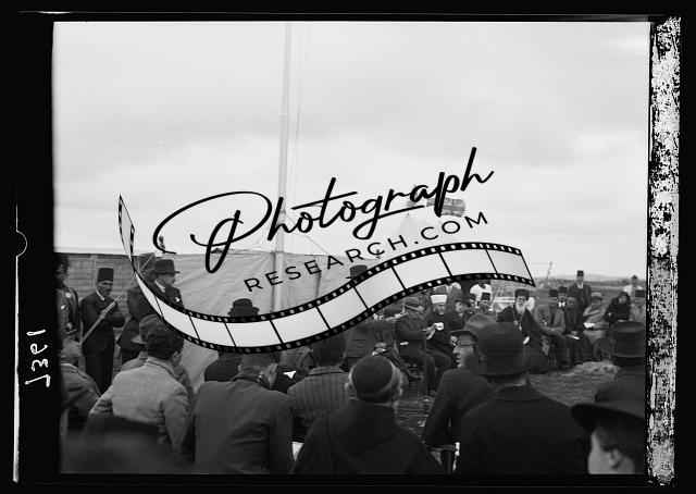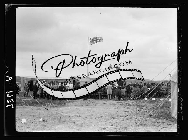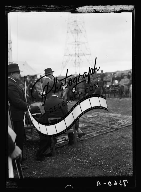 Title: Inauguration of the Palestine Broadcasting Service. March 30 -1[936]. H.E. (i.e., His Excellency) broadcasting the inaugural address, showing mast in background [Ramallah]