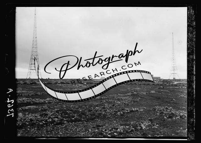 Title: Inauguration of the Palestine Broadcasting Service. March 30 -1[936]. H.E. (i.e., His Excellency) broadcasting the inaugural address, showing mast in background [Ramallah]