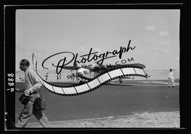 Title: Inauguration of Tel-Aviv landing ground. Palestine Airways. The plane about to leave with group of passengers in foreground
