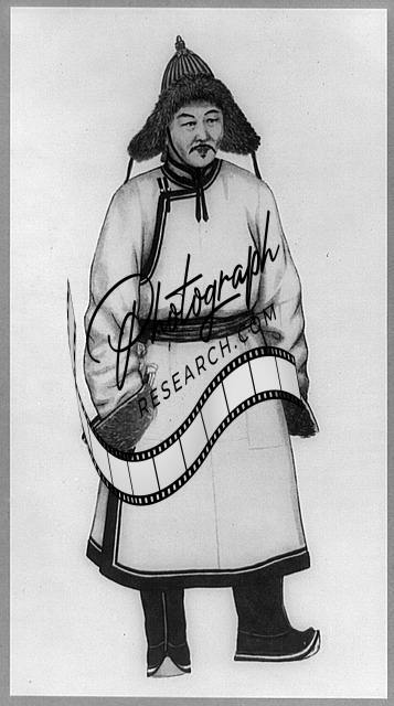 Arate wearing,fur cloak,cap,Mongolian dress,fashion,clothing,Idamsurun,1900