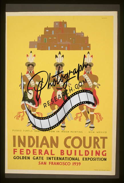 Summary: Poster for the Indian Court exhibit at the Golden Gate International Exposition in San Francisco, showing Haida Indian blanket design.