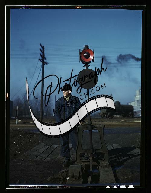 Title: Indiana Harbor Belt RR, switch engine in yard near Calumet park stockyards, Calumet City (near Chicago), Ill.