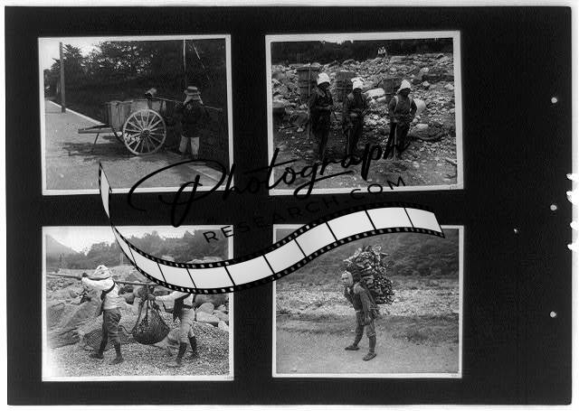 Laborers in Japan,transporting stones,carrying sling of stones,1915-1920