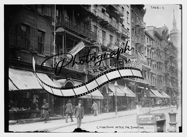 Chinatown after the shooting,Port Arthur sign,store fronts,pedestrians,balcony