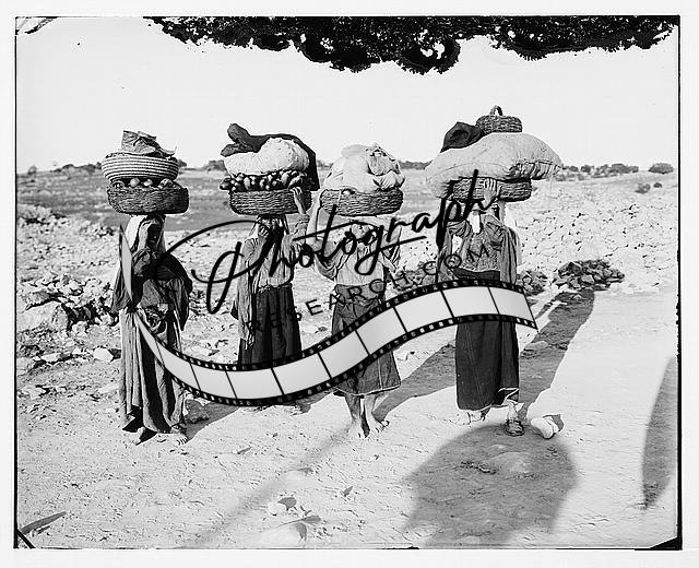 Four Palestinian women on way to market with baskets on heads,Middle East