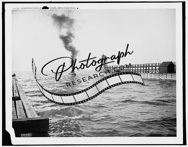 Harbor entrance,light house,docks,steamboats,ships,Charlevoix,Michigan,MI,c1900