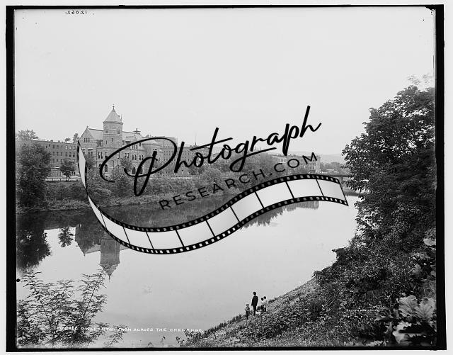 Binghamton,across Chenango River,water bodies,bridge,buildings,New York,NY,1890