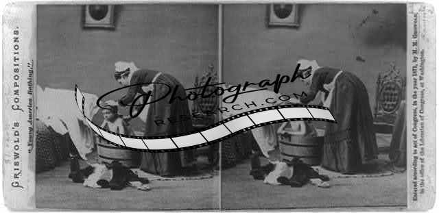 Young America bathing,c1871,woman giving child bath,tub,washing,photograph