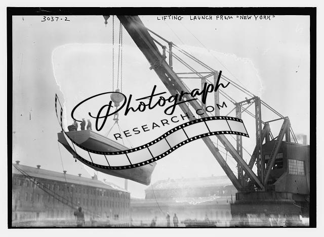 Lifting launch from NEW YORK,crane,boat,men,1910-1915