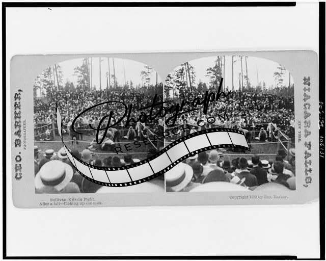 John Sullivan-Jake Kilrain fight,fall,picking up men,boxing,athletes,match,c1889