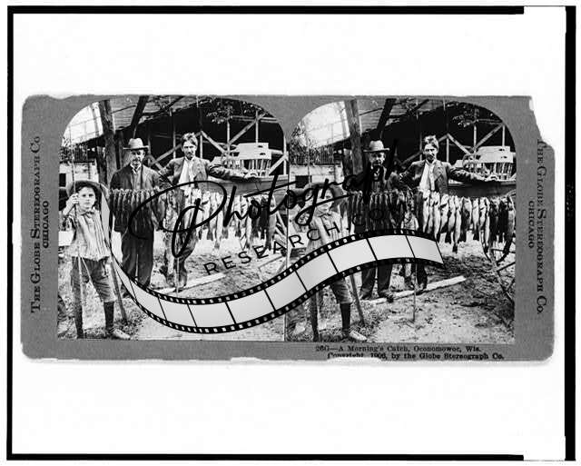 Photo of Stereograph,A Morning's Catch,Oconomowoc,Wisconsin,WI,c1906,Fishing