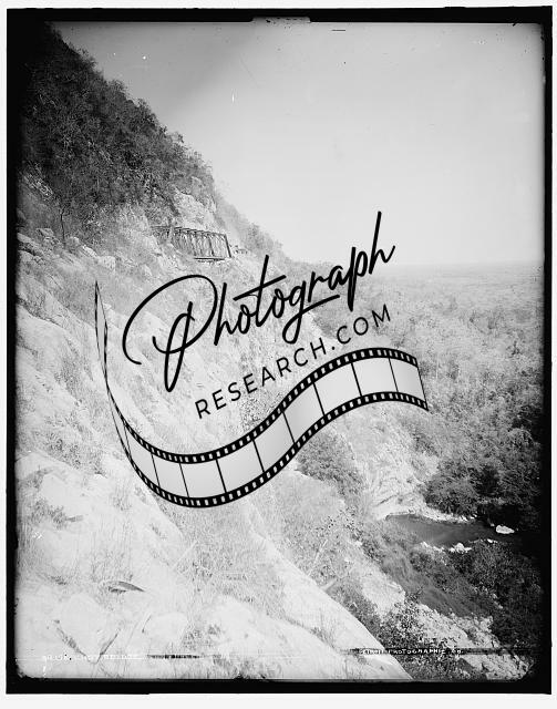Exterior,railroad bridges,tracks,rock formations,cliffs,Choy Cave,Mexico,1880