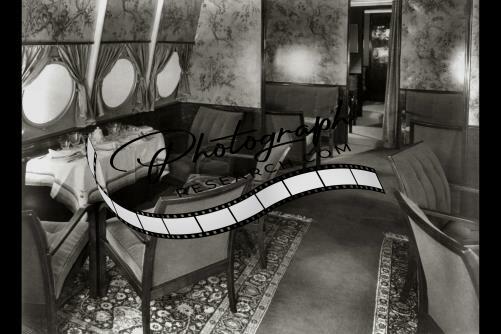 Interior of the Dornier flying boat Do X,1929,chairs,windows,table,dishes
